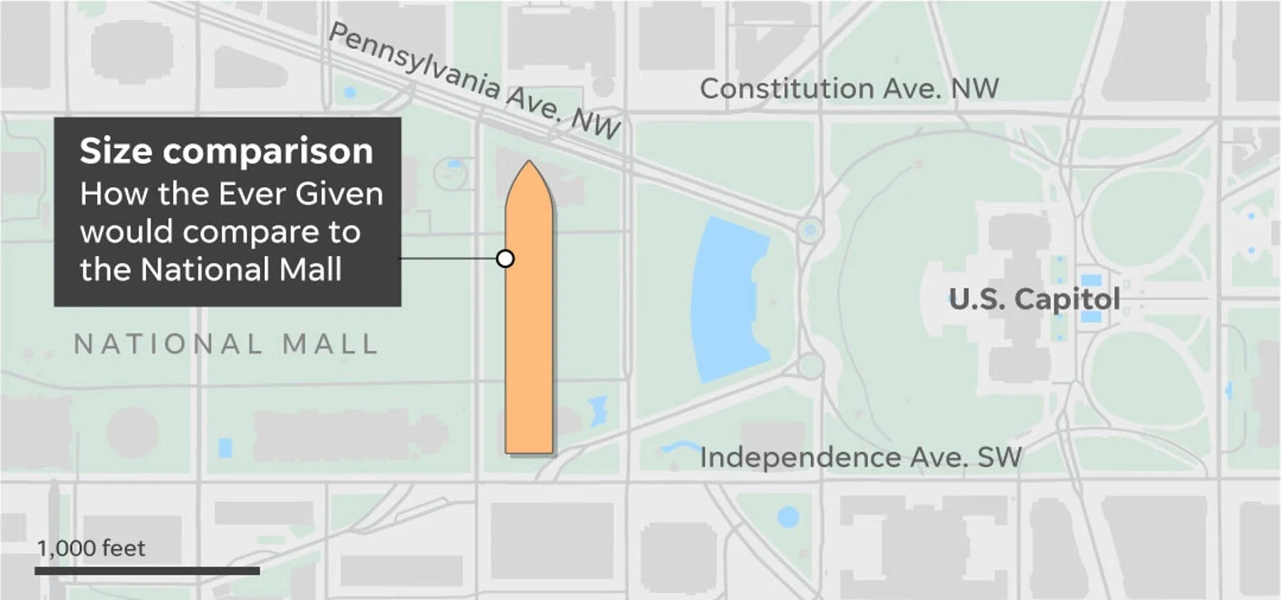 Have you all seen the news about the boat that’s been stuck in Egypt’s Suez Canal? It’s a big boat. Actually, it is a huge boat that is longer than the Empire State Building is tall and as tall as the National Mall is wide in D.C. If not, let me give you a little bit of a rundown on the situation.